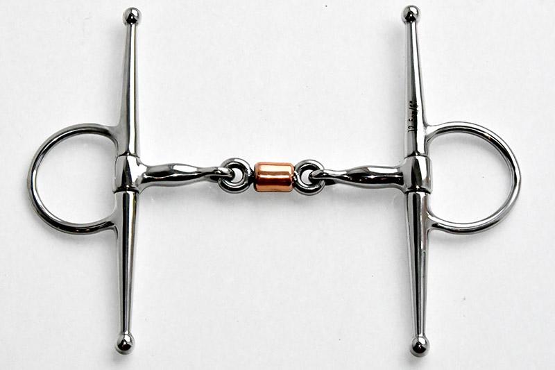 La pièce centrale en cuivre incite le cheval à jouer avec son mors. L’association de deux métaux différents et, notamment, la présence de cuivre, active la salivation du cheval produisant un effet décontractant.