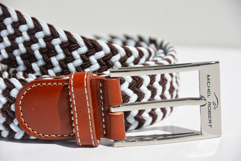 Ceinture tressée élastique Michel Robert - Chocolat-Blanc