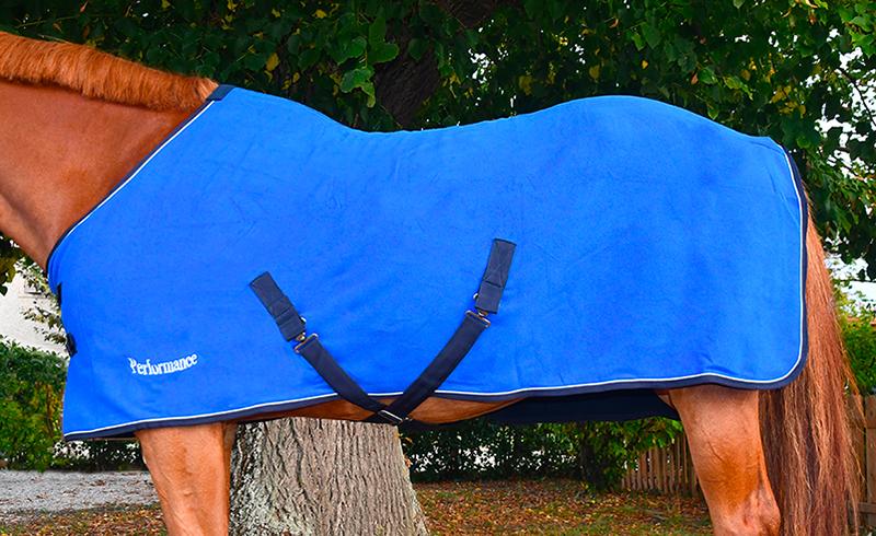 Très belle chemise polaire 360 gr de box ou de transport avec sangles croisées. Protection de garrot. Courroie de queue.