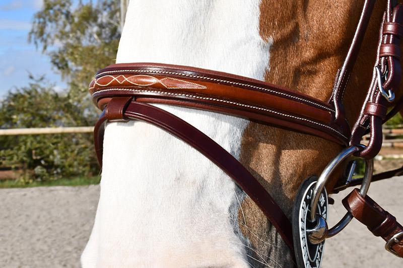 Les surpiqures blanches au niveau du filet et des rênes ainsi que la bouclerie argentée inoxydable ajoute à l’esthétisme irréprochable de ce nouvel équipement haute gamme.