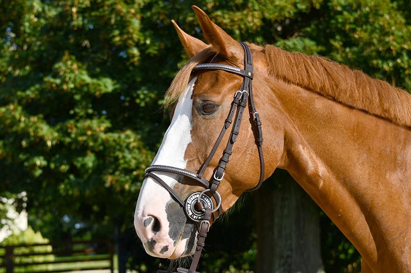 Têtière anatomique doublée, bouclerie lyre nickelée.