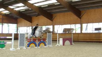 L’objectif de la leçon est d’inciter Antilope à bien décomposer son geste à l’obstacle. La jument a en effet tendance à passer très fort les postérieurs, mais elle n’est pas toujours assez rapide et rangée dans ses antérieurs. Michel va donc mettre en place quelques exercices qui vont lui permettre de mieux utiliser son encolure et l’ensemble de son corps pour bien décomposer ses sauts et monter les genoux.