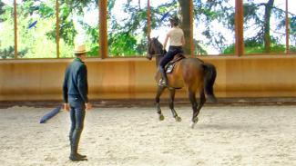 Une leçon de travail sur le plat très complète avec Michel Robert et Véronique Bartin. Au programme : amélioration de l'engagement, mise en main, travail du tournant et du changement de pied.